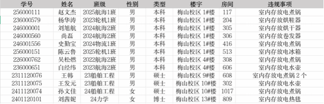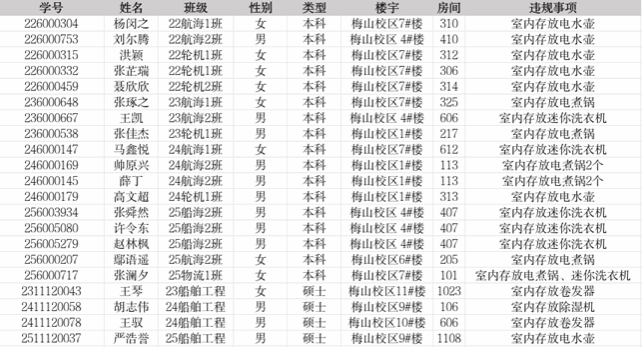 请广大师生务必要提高安全意识和防范能力,有效防范化解寝室违禁电器和电动车消防安全风险,及时消除安全隐患,维护校园稳定和正常的学习生活秩序。