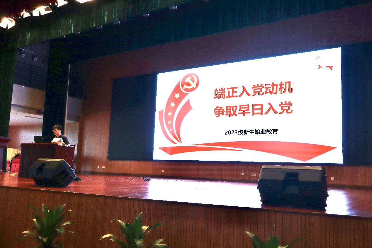 为帮助2023级本科新生尽早了解入党流程,坚定理想信念,积极向党组织靠拢,9月12日下午,疯av 在梅山校区大会堂举行新生入党第一课——“端正入党动机,争取早日入党”。此次入党第一课由学院学生党建辅导员房浩霖主讲。