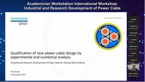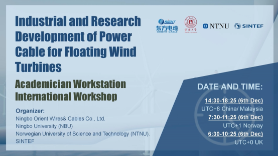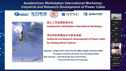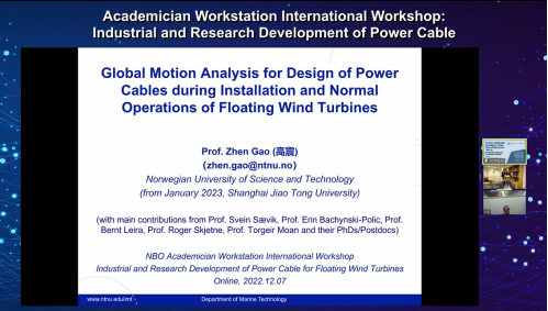 为贯彻落实二十大报告中“发展海洋经济,保护海洋生态环境,加快建设海洋强国”的精神,2022年12月6日,由疯av 、宁波东方电缆股份有限公司、挪威科技大学和挪威科技工业研究所联合举办的院士工作站国际研讨会——浮式风机动态电缆技术与研究进展,以线上直播的方式召开。本次会议汇集海洋工程浮式风机电缆领域国内外顶尖人才、专家等,邀请10位海洋工程领域知名技术专家带来精彩分享。会议旨在共同探讨浮式风机动态电缆方面的最新研究进展,以推动我国海上风电及深海动态缆产业发展。