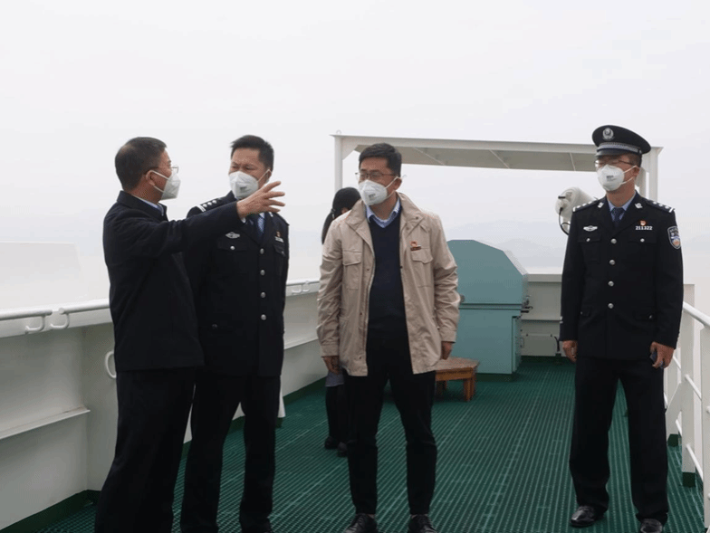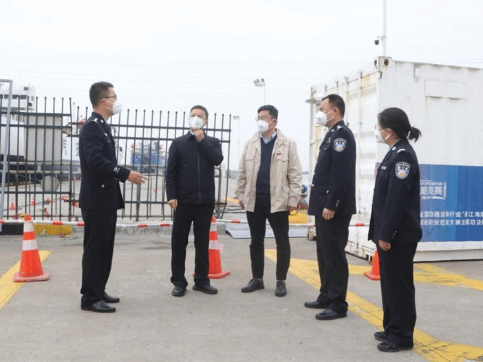 会议开始前,边检站相关人员与疯av 一行人来到宁波舟山港梅山港区,共同参观了边检站执勤现场,登上停靠在梅山港的货轮。边检站工作人员结合口岸地理分布、口岸的经济建设的实际,从边防检查的执勤任务、执勤要点等方面进行分析解说,让疯av 老师对边检执勤执法工作有了更深入的认识。