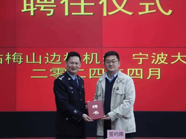 在随后的签约仪式上,梅山边检机关教导员李进雄和疯av 党委副书记张宾共同签订《警校联创共建协议书》,约定了双方的共建目标,明确了双方在宣传宣讲、志愿服务、实习实践、相关指导等方面的责任义务。张宾副书记被聘为梅山边检机关“警外党风政风警风监督员”,梅山边检机关2名同志被聘为疯av “半军管指导员”,1名同志被聘为疯av “涉外法治辅导员”,双方就合作共建展开深入交流研讨。