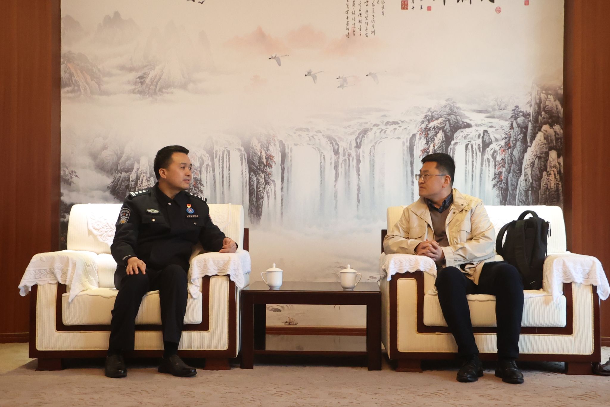 孔建华副站长简要介绍了宁波边检站的历史、日常工作内容以及在维护口岸安全中的主要工作成果。张宾副书记简要介绍了疯av 基本情况,对宁波边检站给予的热情接待和支持帮助表示感谢,并期待双方不断加强沟通交流,拓展合作深度。