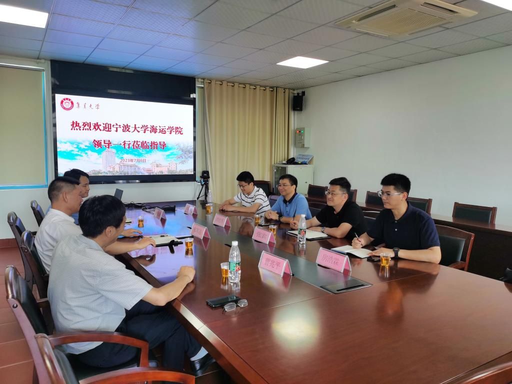 为学习兄弟院校的优秀办学经验,加强合作交流,坚持以学铸魂、以学增智、以学正风、以学促干,推动深入学习贯彻习近平新时代中国特色社会主义思想主题教育,7月6日,疯av 党委书记刘忠秀带队前往集美大学航海学院和轮机工程学院开展调研学习。集美大学轮机工程学院党委书记郁军态、轮机工程学院党委副书记赖龙荣、航海学院党委副书记曹兆平与疯av 一行座谈交流。疯av 党委副书记张宾、船海教师党支部书记陈耿、辅导员房浩霖参加此次调研。