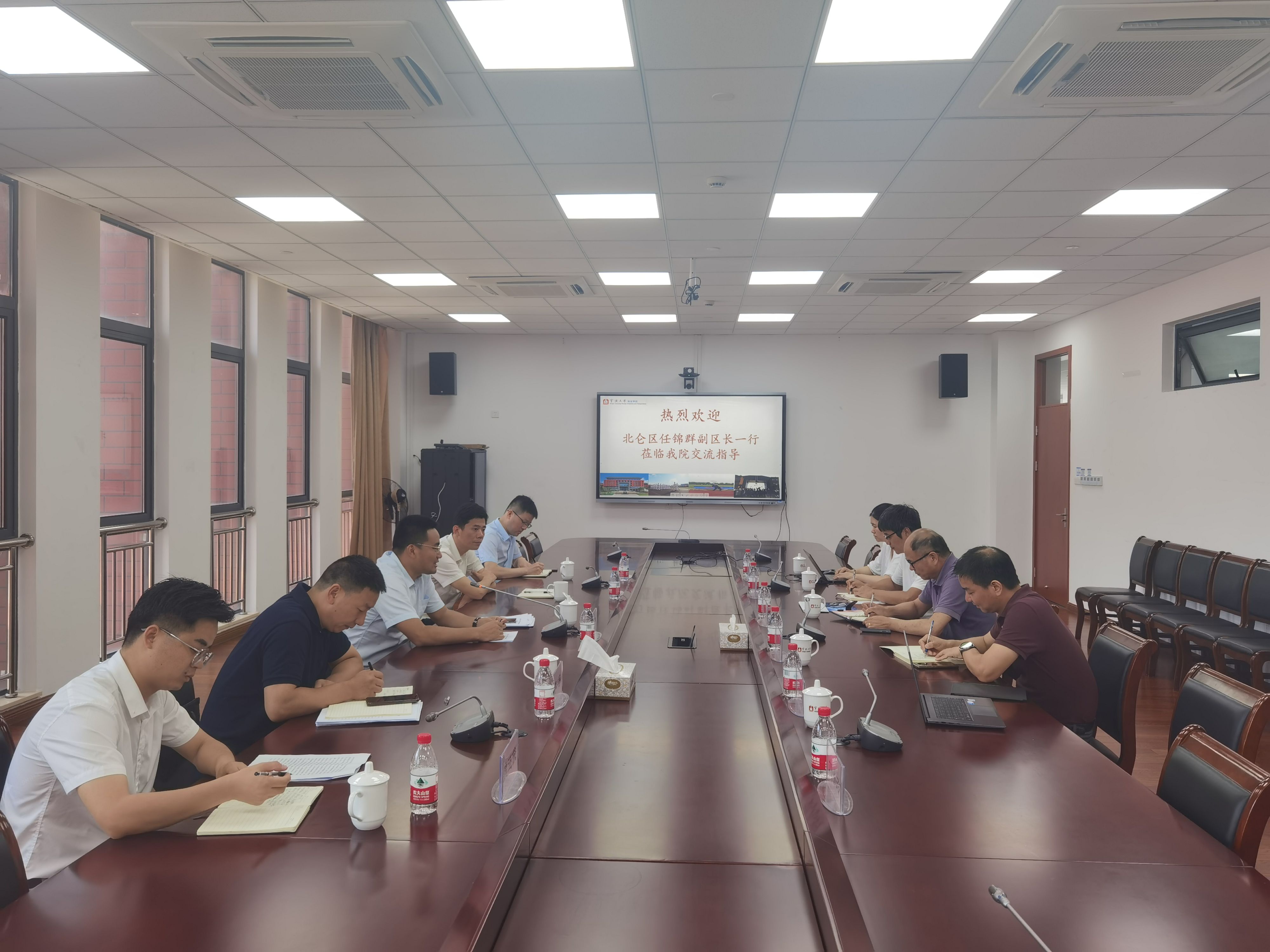 7月4日,北仑区副区长、宁波经济技术开发区管委会副主任任锦群一行到疯av 调研交流,特聘院长郑彭军、院党委书记刘忠秀接待了调研组一行并座谈交流。