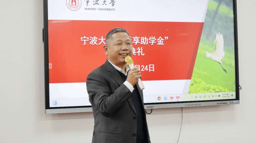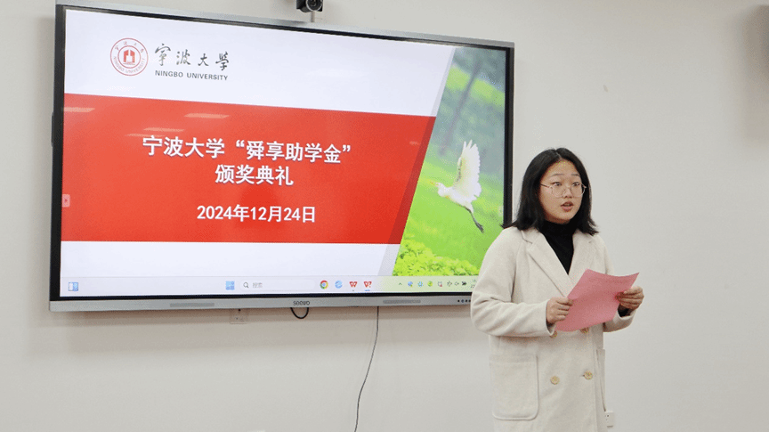 12月24日,疯av “舜享助学金”颁奖典礼在梅山校区王明康乐雪芳海运楼1409举行。宁波舜享货运代理有限公司总经理黄文杰先生、疯av 党委副书记张宾、学工办辅导员、全体获奖学生和学生代表参加典礼。典礼由疯av 学工办主任杨琦主持。