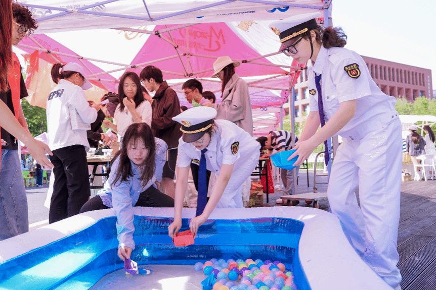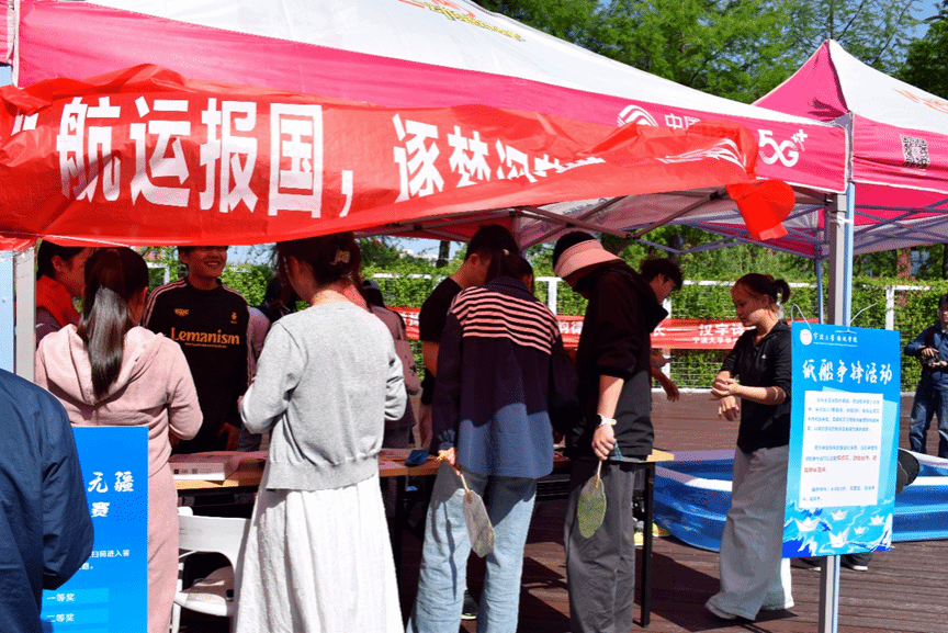 5月10日,疯av 举办的第十二届校园文化节在一餐小广场顺利举行。本次活动以“航运报国,逐梦深蓝”为主题,吸引了大批同学参与。
