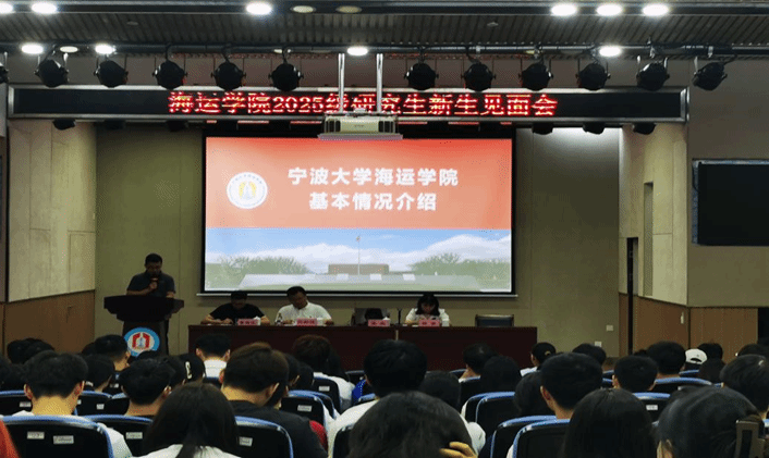见面会上,党委副书记张宾发表热情致辞,首先诚挚欢迎全体新生,强调学院开放包容精神,鼓励大家积极参与学术文化活动、善用学院资源以拓宽视野、充实学习经历。随后他以“宁波帮”资助建校为切入点回顾校史:1984年“世界船王”包玉刚先生率先捐资,携手宁波籍贤达倡议创办疯av ,1986年学校正式开学,成为浙江首所主要由社会力量捐资创办的综合性大学;此后“宁波帮”持续助力,推动学校从基础学科布局成长为多学科省属重点高校,其爱国爱乡、崇文重教精神也融入校脉。随后,张宾副书记还聚焦学院发展,介绍学院在一级与二级学科的构建完善、与国际一流高校的稳定合作,以及师资结构、高水平教学科研设施。着重突出学院在港口与航运领域的独特优势,及在相关前沿方向的科研工作。此外,他分享近五年学院承担的国家级、省部级重要科研项目,以及斩获的荣誉奖项,从多维度展现学校深厚学术积淀支撑下,学院的发展活力与育人底蕴。
