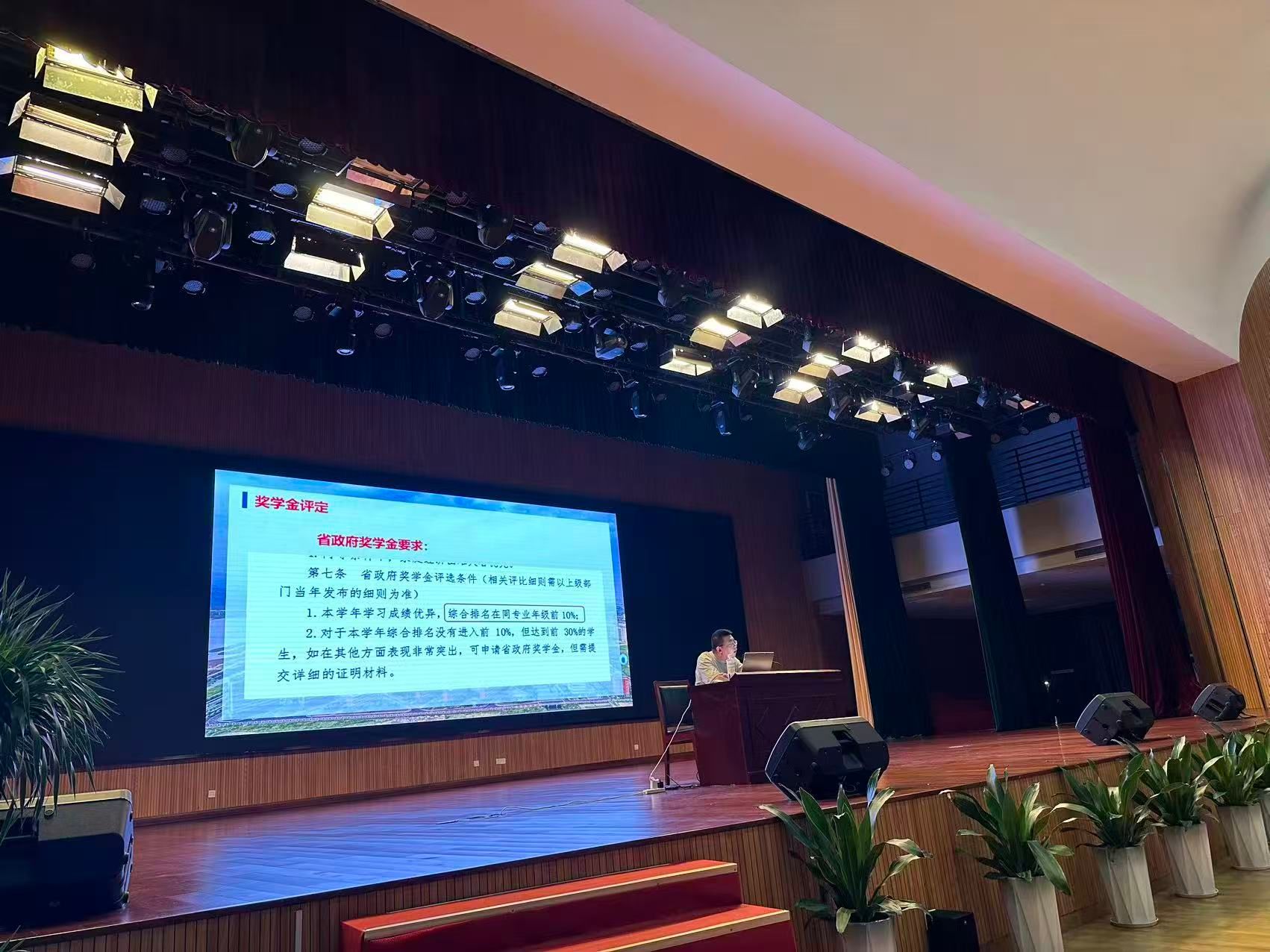 随后,朱冠帆系统介绍了学校“奖助贷保”相关政策,涵盖助学贷款、医疗保险、助学金及奖学金四大板块。他对各类奖助学金的申请条件、评审流程和注意事项作了细致说明,并鼓励符合条件的学生积极申请,减轻家庭经济负担,专注学业发展。朱冠帆表示,学校始终坚持以生为本,致力于为每一位学生的成长成才提供坚实保障。