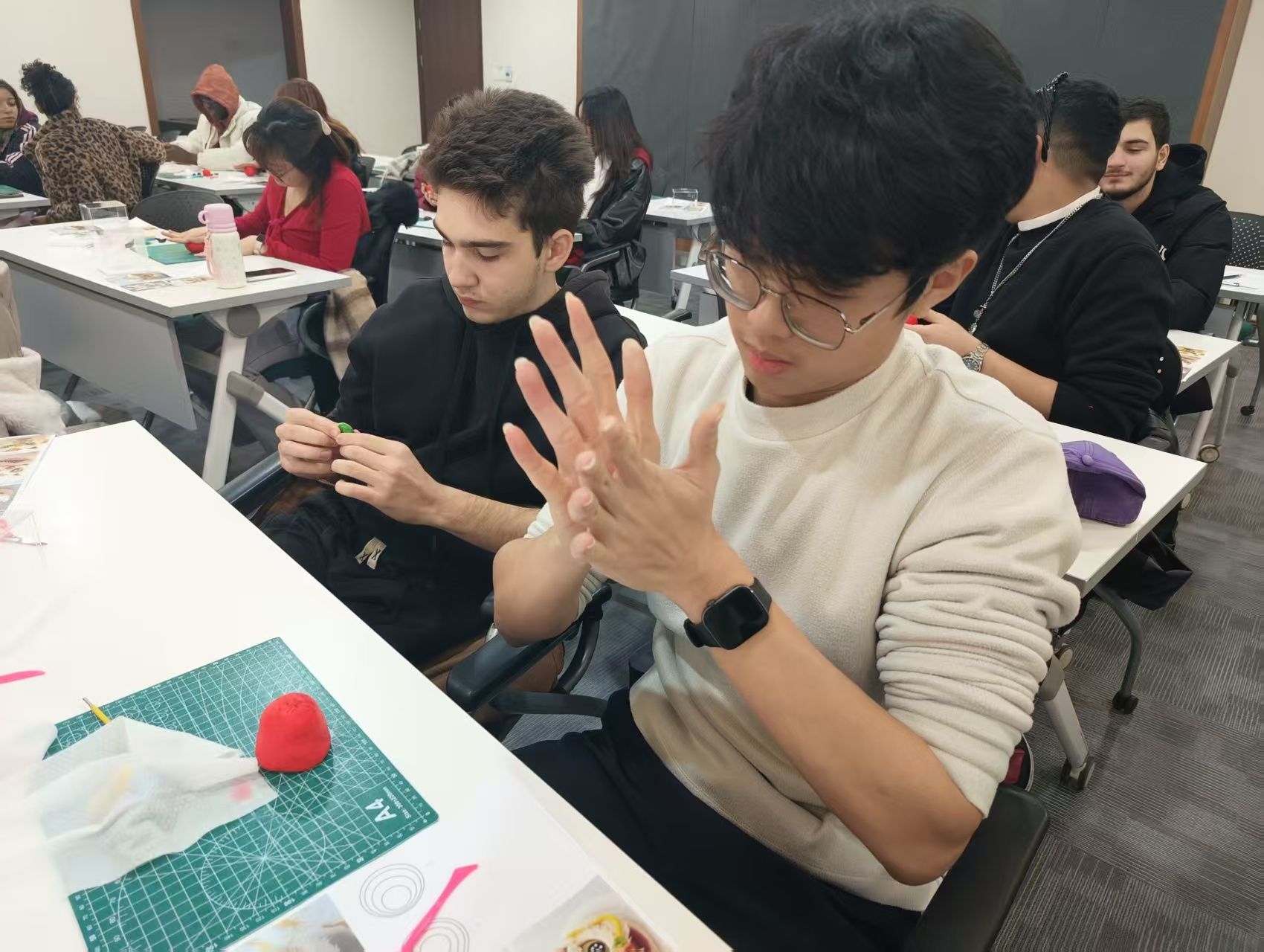 12月26日下午,疯av 面向留学生举办以“乘风破浪,‘狮’放压力”为主题的非遗面塑体验活动。通过借助中国传统面塑艺术,为正处于期末阶段的留学生提供文化体验与心理减压的双重支持。