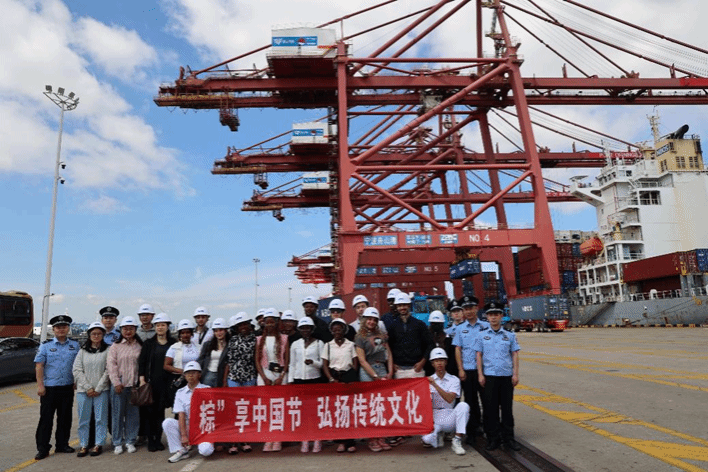 5月29日下午,在中国传统节日端午节来临之际,疯av 与梅山出入境边防检查站联合举办了一场别开生面的文化交流活动。在宁波舟山港梅山港区,来自世界各地的20余名国际学生参与了以“‘粽’享中国节,弘扬传统文化”为主题的文化体验活动,共同感受中国深厚的文化底蕴和现代港口的繁荣景象。