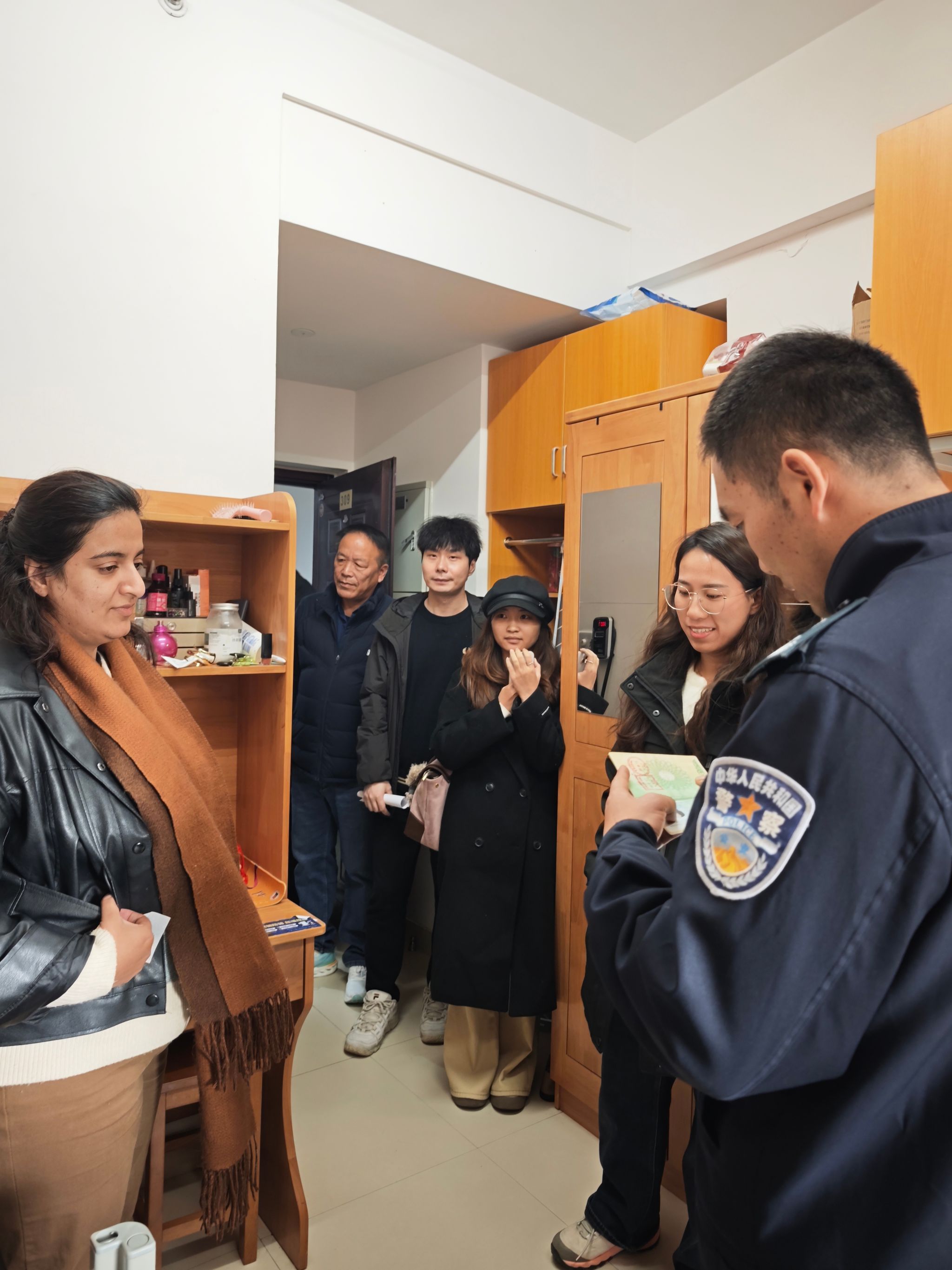为切实保障学院国际学生安全,提升留学生安全意识,营造平安、和谐的校园环境,12月23日下午,疯av 联合梅山派出所、梅山校区保卫部及国际交流学院,共同对留学生公寓开展了节前安全走访检查与专题教育活动。