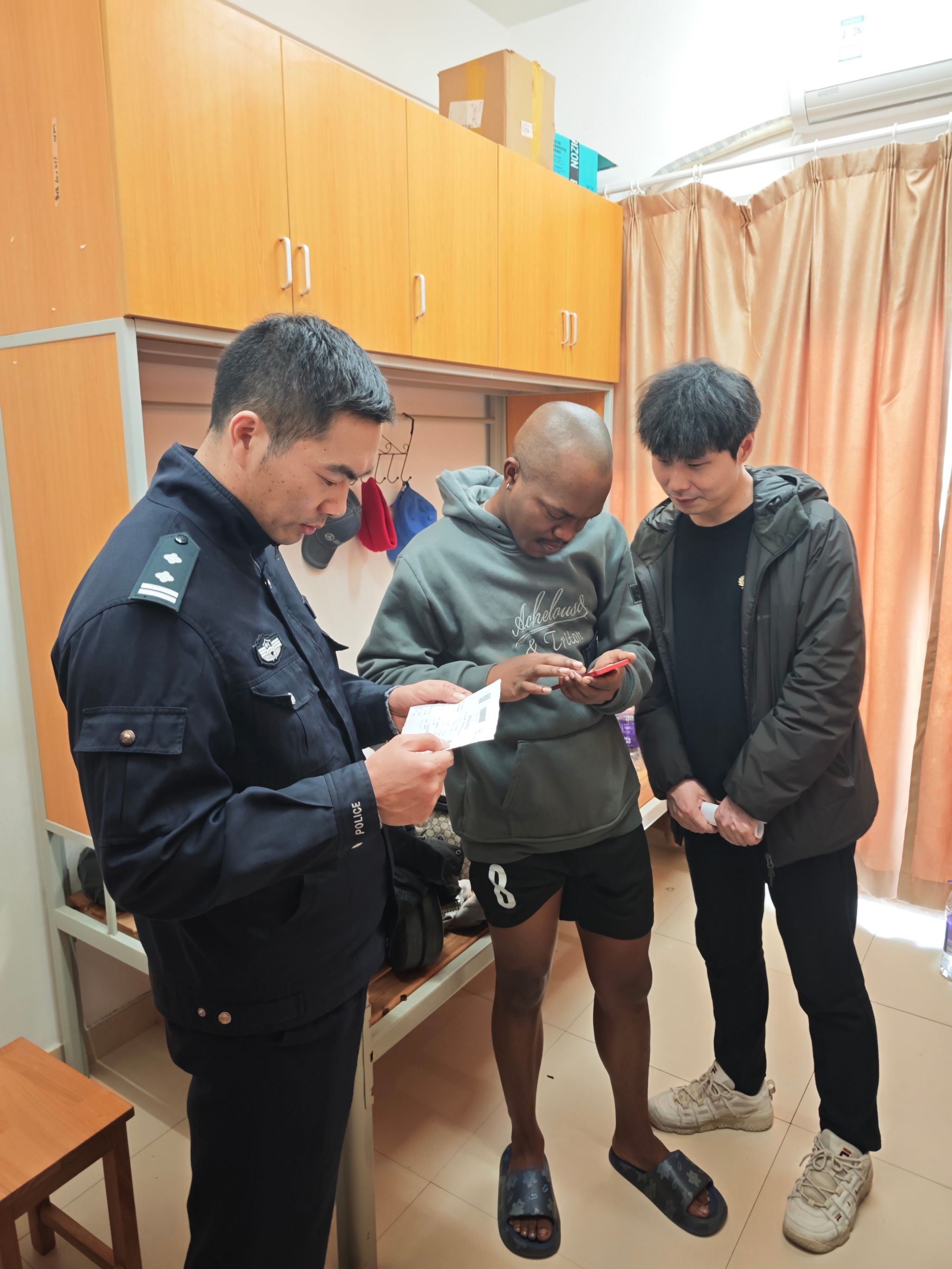 本次联合行动聚焦留学生群体的实际生活与安全需求,围绕多个重点领域展开。走访团队深入学生宿舍,细致检查用电安全,重点排查违规使用大功率电器等隐患,提醒学生注意防火安全。同时,结合期末及节假日特点,老师们与民警向同学们进行了面对面的安全提醒,内容包括严格遵守作息时间、减少晚归、杜绝夜不归宿行为,以及遵守中国法律、抵制“三非”行为、注意交通安全、文明出行。